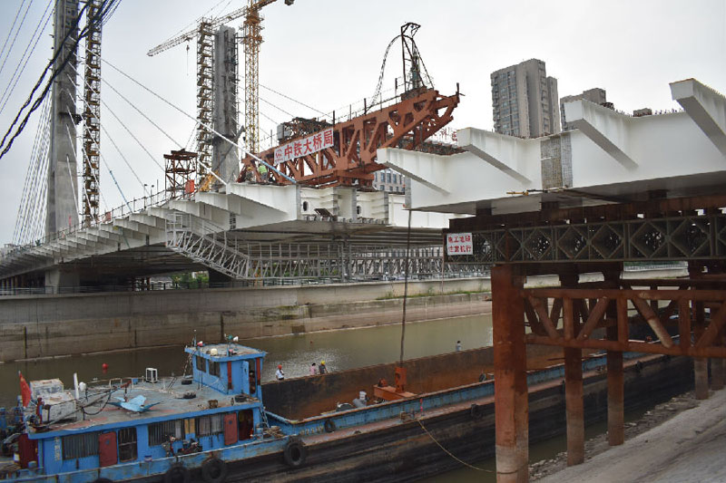 近期,隨著中江橋主橋最后一塊MB09節(jié)段鋼箱梁吊裝工程完成,標志著中江橋主橋正式合龍。