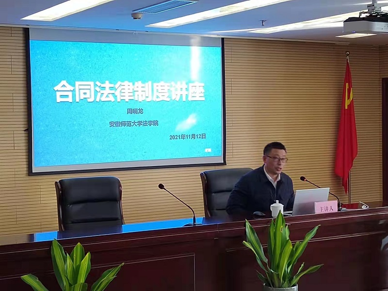 11月12日下午,為進一步落實公司“提升依法治企水平、增強員工法律意識”的法治宣傳工作要求,公司邀請了安徽師范大學法學院周哨龍副教授在12樓會議室做了合同法律制度專題培訓,周教授重點解讀了合同法律通則部分內(nèi)容,并結合實際案例和企業(yè)常見合同法律風險等方面做了詳細而通俗易懂的講解。