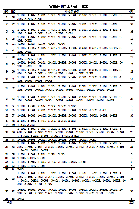 由原益安公司和市建投公司負(fù)責(zé)拆遷和安置的安置戶,安置房辦證工作開展已經(jīng)近三年了。截止目前,還有少部分樓棟號(hào)的安置戶(具體樓棟號(hào)詳見附表)至今未來辦理辦證手續(xù)。請(qǐng)你們于12月31日前,來我公司辦理相關(guān)的辦證手續(xù)。若因安置戶自身原因拖延未辦理各項(xiàng)辦證手續(xù)的,今后由此產(chǎn)生的辦證不便和麻煩,由各安置戶自行承擔(dān)。如有疑問或不清楚的請(qǐng)咨詢我公司,咨詢電話:5992137,5992136。