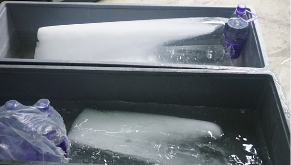 為車間送“清涼”:公司黨支部、安委會協(xié)同工會每天在生產車間不同區(qū)域放置冰塊以降低溫度,為一線員工送去絲絲清涼。