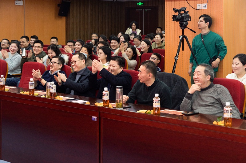 年會(huì)表演在熱情洋溢的《歌舞青春 暢想未來》節(jié)目中拉開帷幕,《歌曲串燒》《迎龍回首話今歲》《新地理圖》《克羅地亞狂想曲》《玫瑰人生》《碰頭會(huì)》《相親相愛》等包括歌舞、三句半、相聲、電子琴、情景劇在內(nèi)的不同形式的節(jié)目輪番上演,精彩紛呈、好評(píng)如潮,贏得了現(xiàn)場(chǎng)觀眾的陣陣掌聲。表演過程中,穿插在節(jié)目中間一輪又一輪的《猜歌曲》《你比我猜》《搶板凳》等互動(dòng)游戲將年會(huì)現(xiàn)場(chǎng)氣氛推向高潮,讓全場(chǎng)人員驚喜不斷、歡笑連連,整個(gè)活動(dòng)充滿著歡快祥和的濃厚氛圍。